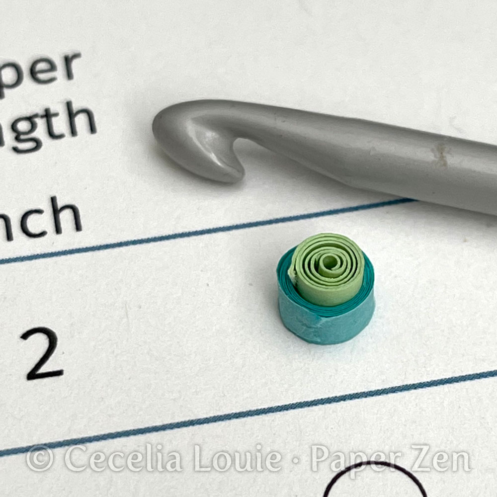 Make circles out of quilling paper, using a crochet hook or any other item with the exact diameter needed to match the circle. Ensure your strip width is shallower than the coil you plan to place inside, so you can still pick up your coil again with tweezers.