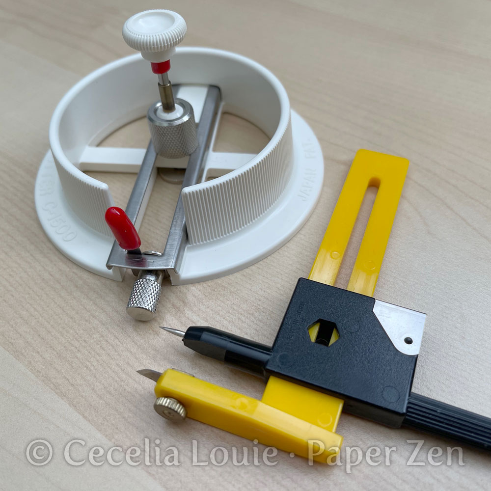 Circle cutters such as NT Cutter or Olfa will cut a clean circle out of your card stock. To raise the template off your work surface, simply add mat board strips underneath.