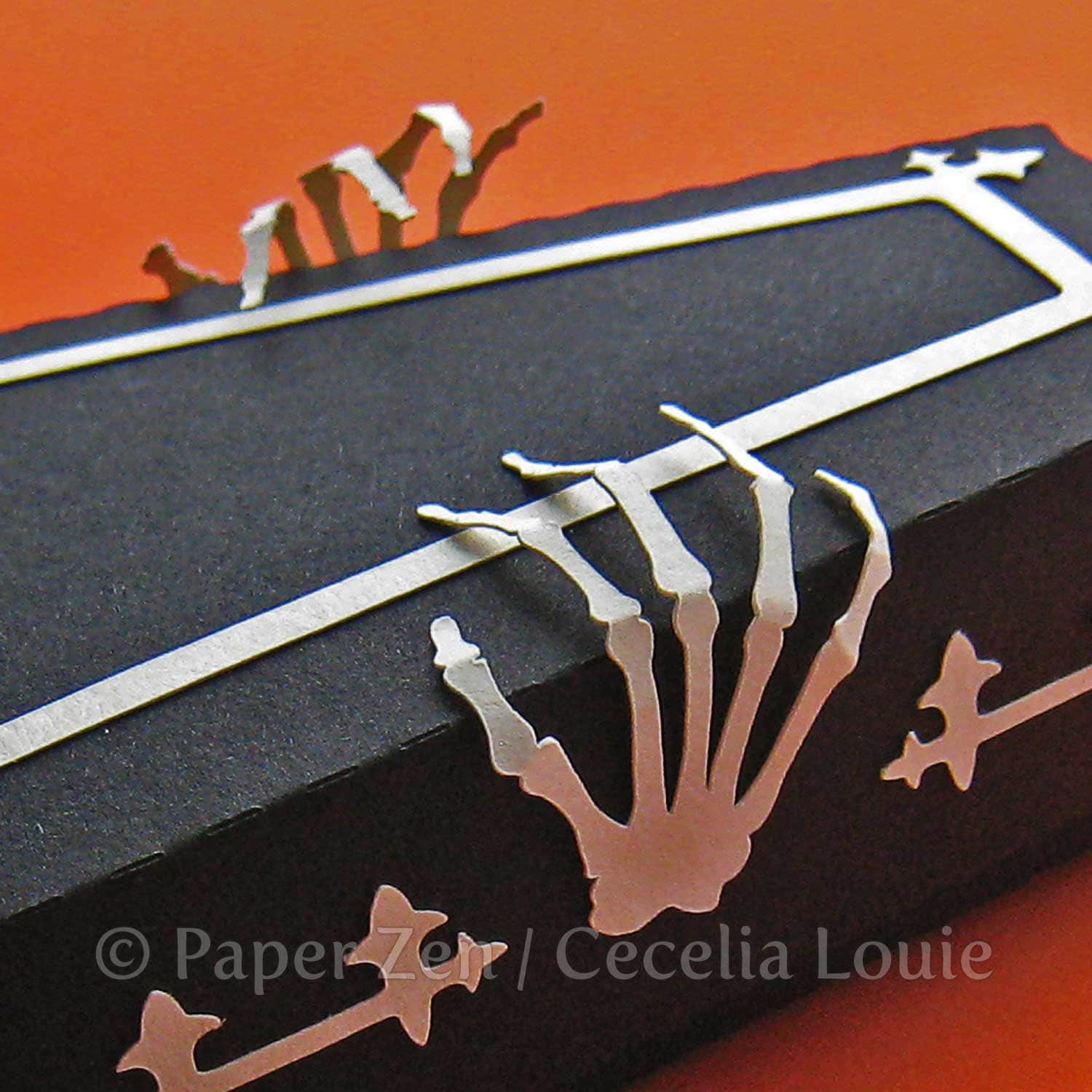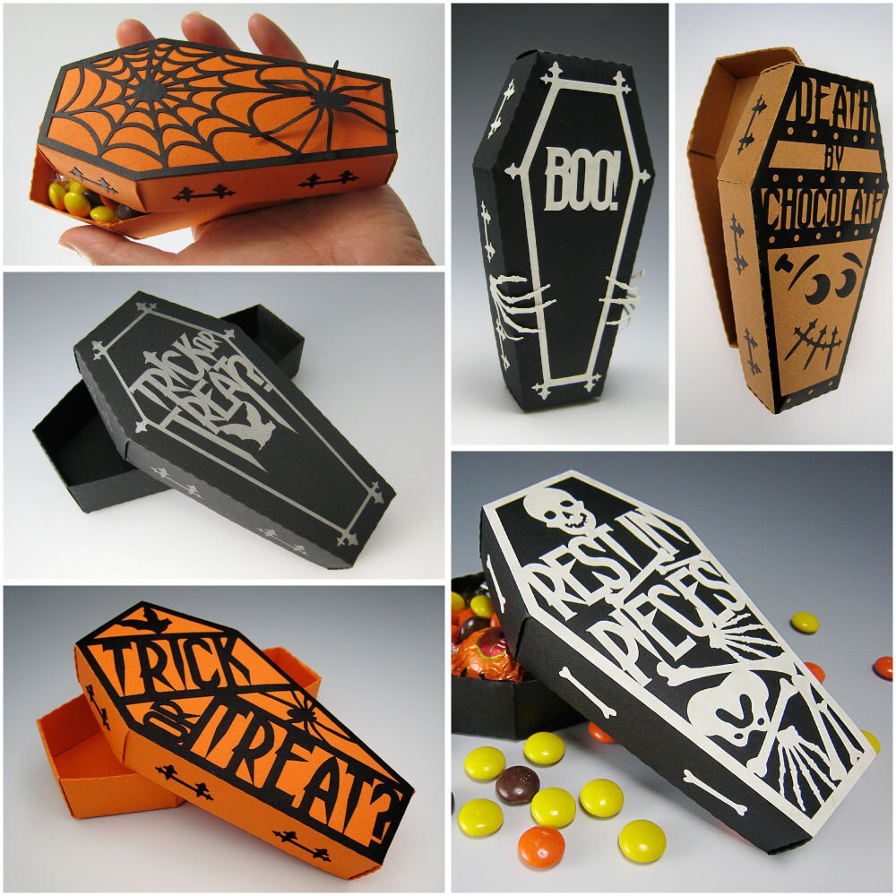 Spook your Halloween trick-or-treaters with a coffin party favor box. Your candy won't spill because the walls of this box are double-thick.